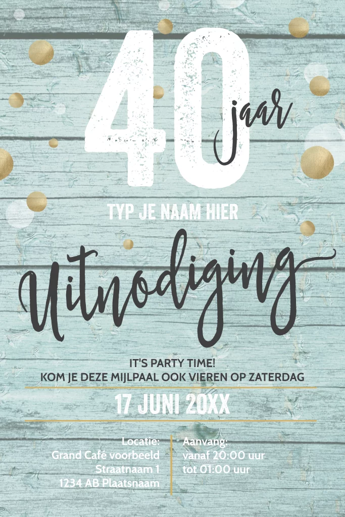 Uitnodiging 40 jaar verjaardag hip mint hout