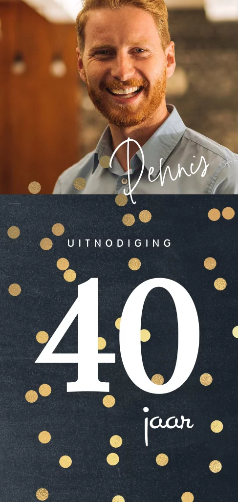 Binnenkort 40 jaar? Van harte gefeliciteerd! Ontwerp zelf deze feestelijke uitnodiging speciaal voor je 40e verjaardag!