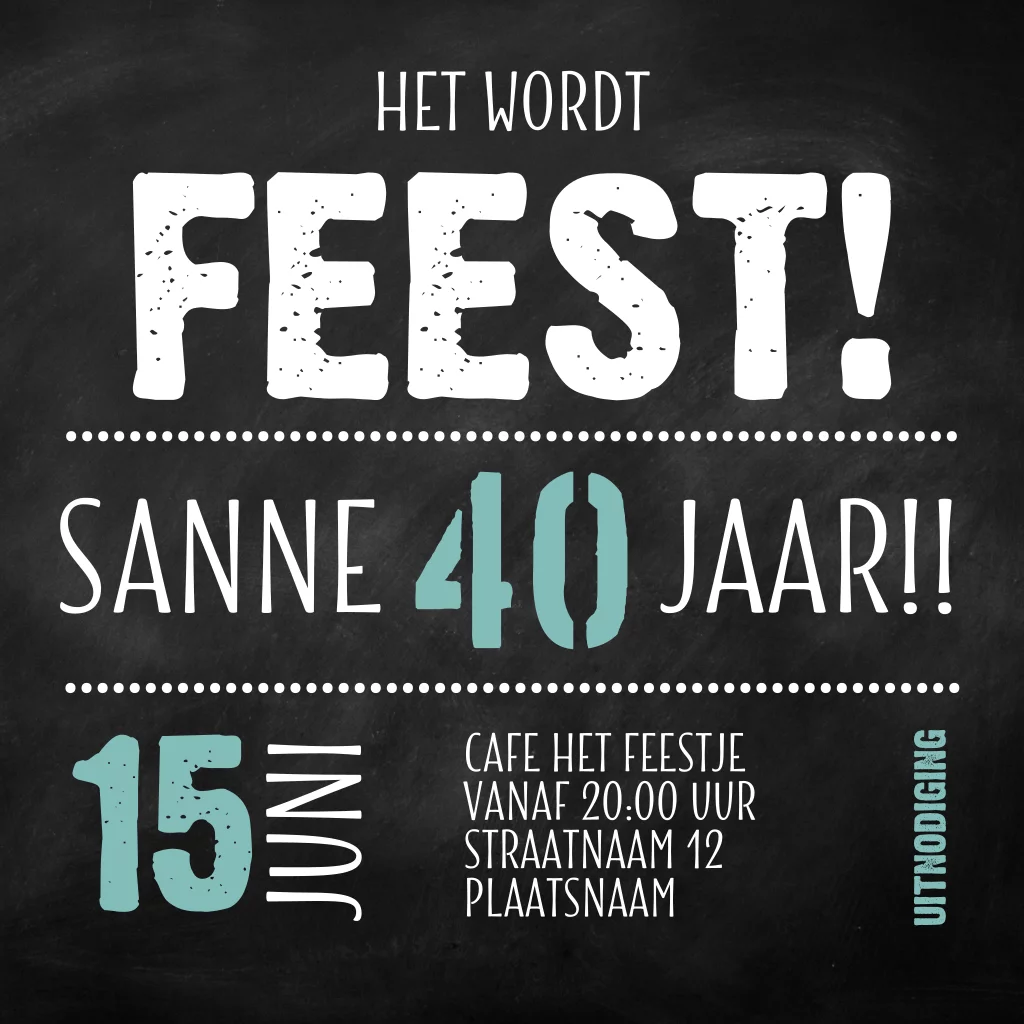 Uitnodiging feest 40 jaar schoolbord typografie