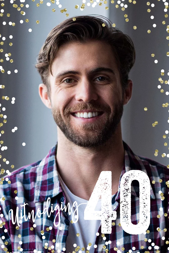 Maak zelf een originele uitnodiging voor je 40ste verjaardag met je eigen foto, met dit feestelijke ontwerp van Luckz.