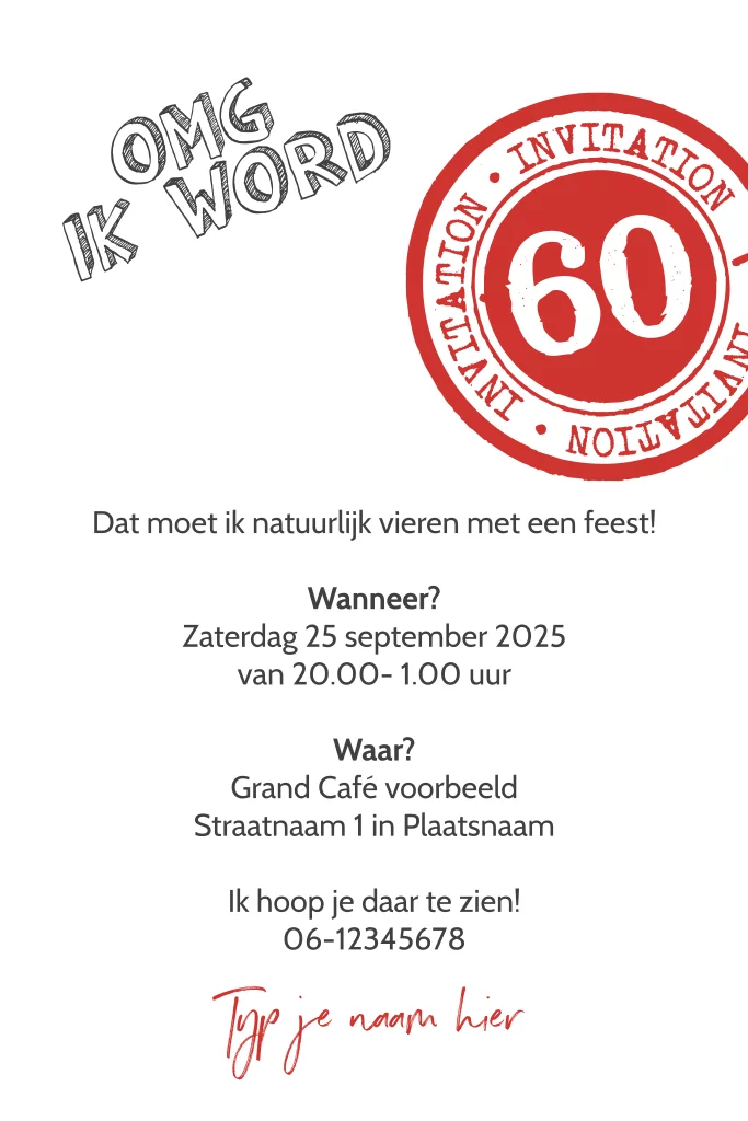 Maak zelf de leukste uitnodigingen voor 60 jaar bij Luckz!