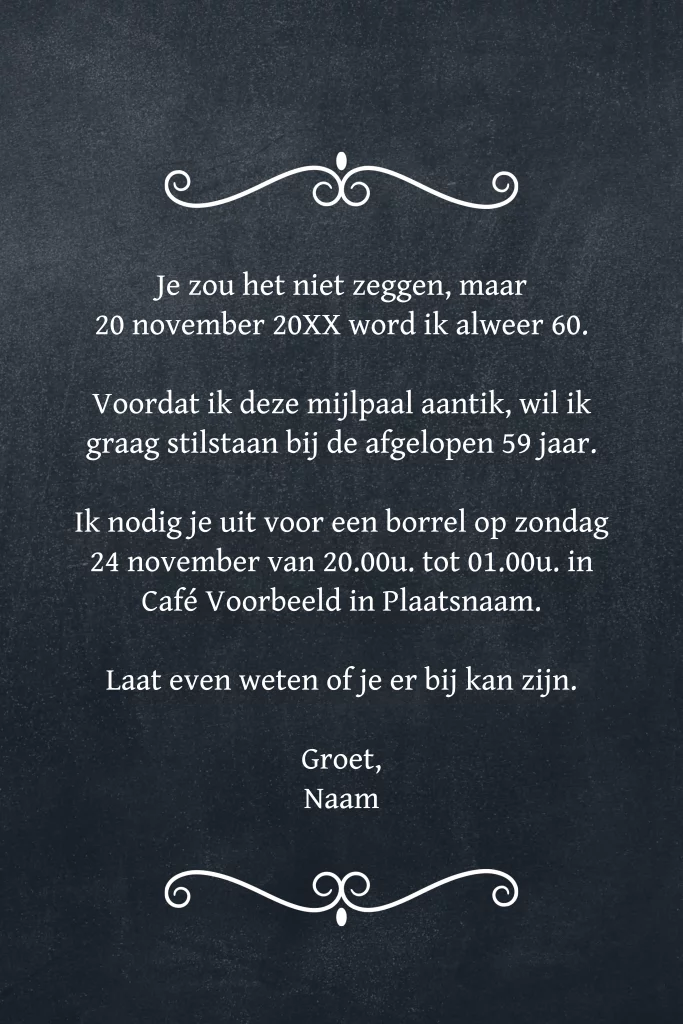 Verjaardag uitnodiging 60 jaar krijtbord label