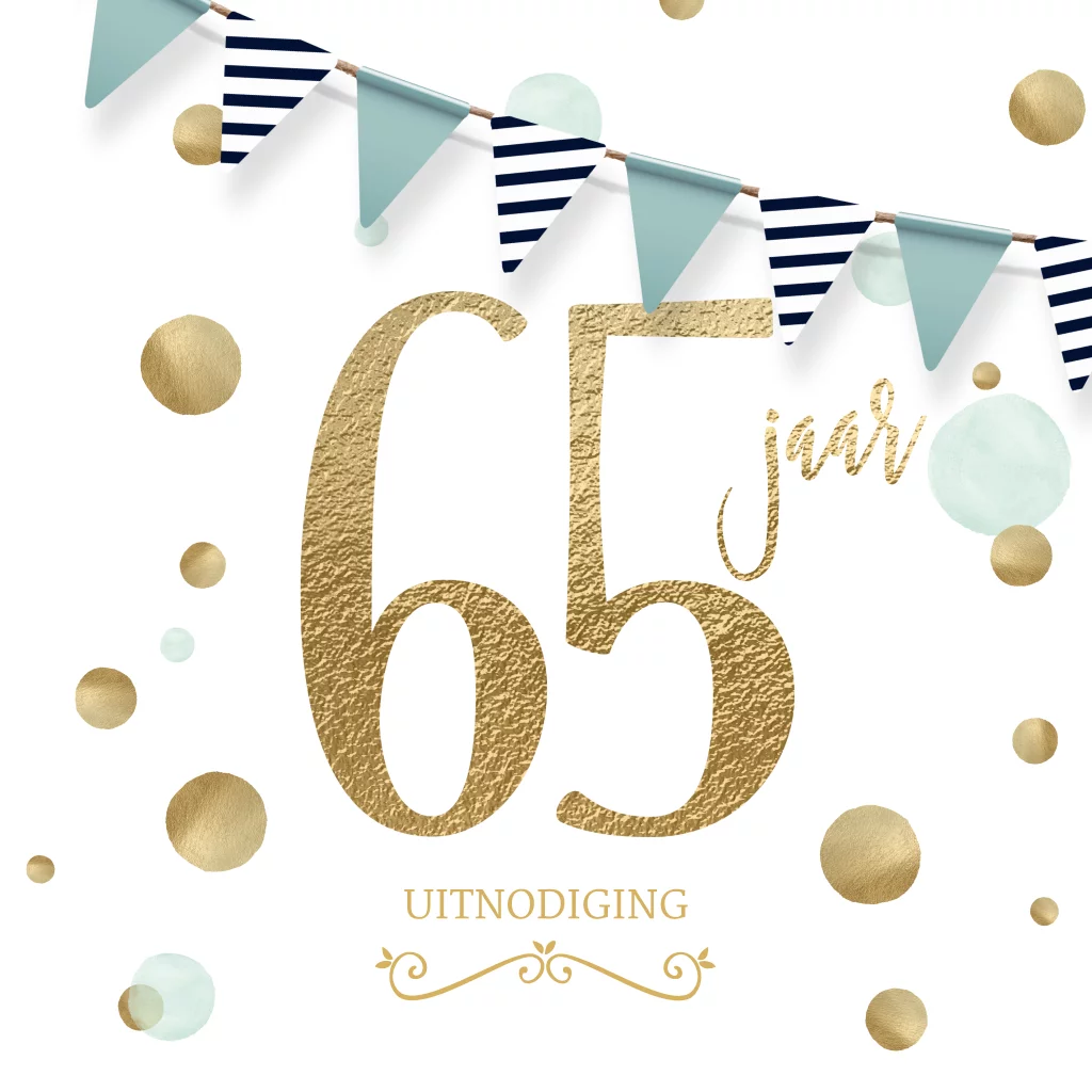Leuke uitnodigingskaart verjaardag 65 jaar goud look
