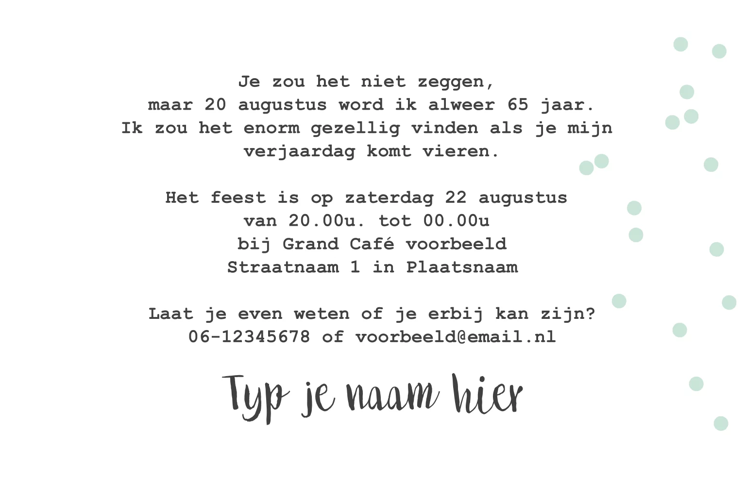 Maak je eigen unieke uitnodiging voor een man of een vrouw voor je vijfenzestigste verjaardag bij Luckz.