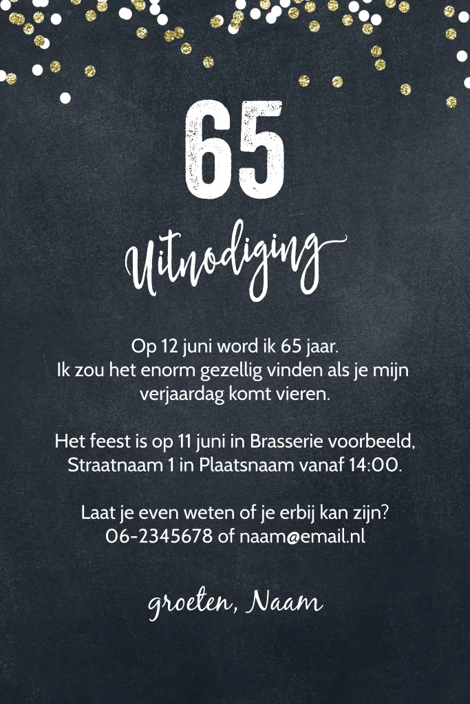 Verjaardag uitnodigingen 65 jaar met foto zelf maken