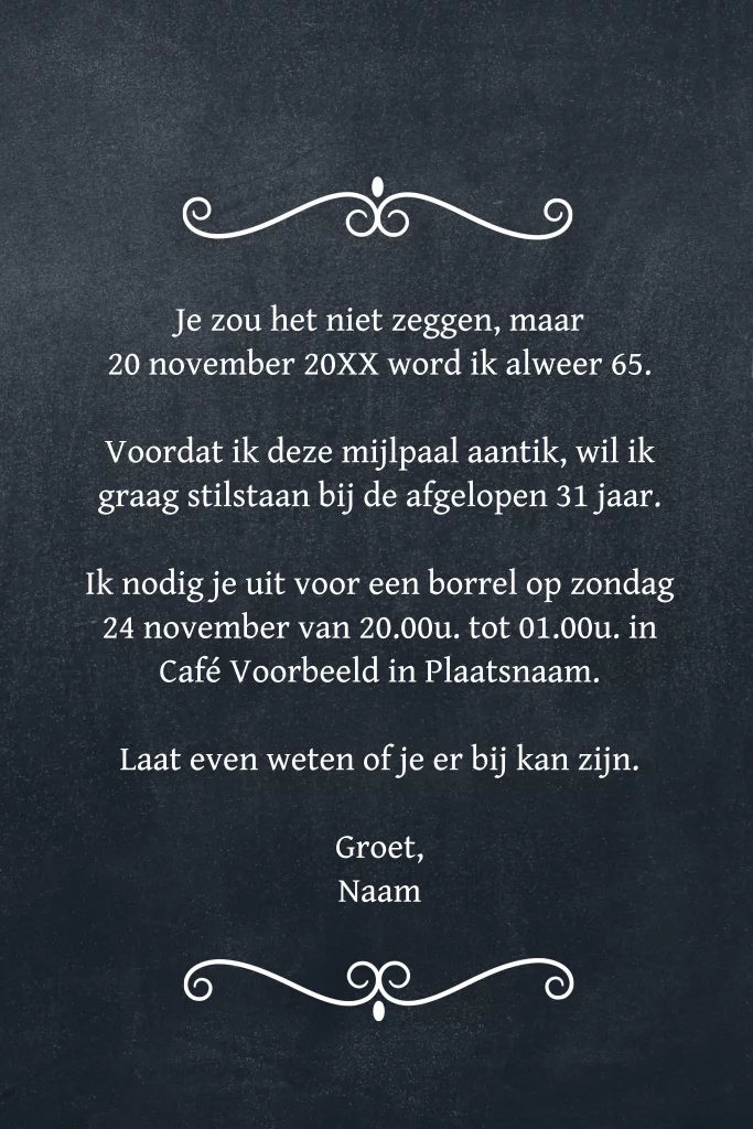Verjaardag uitnodigingen krijtbord label 65 jaar