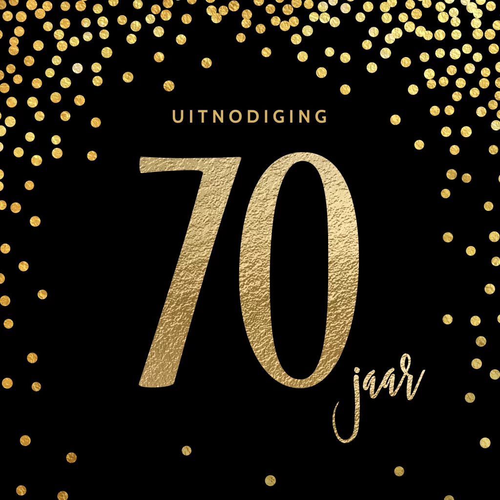 Elegante uitnodiging 70 jaar verjaardag gouden confetti zwart