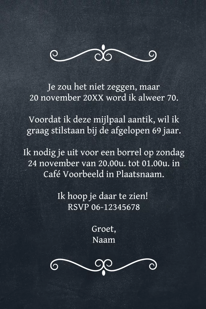 Verjaardag uitnodiging krijtbord label 70 jaar