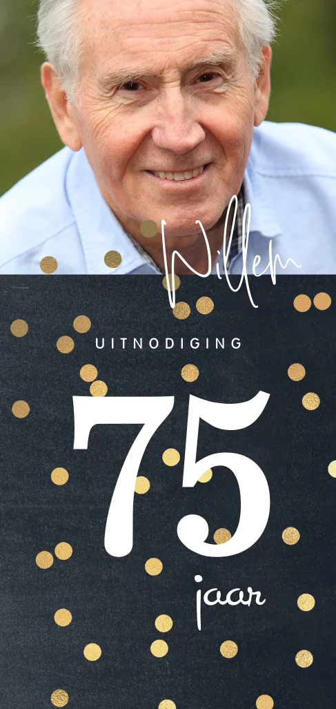 Leuke staande uitnodiging voor 75 jaar van Luckz.