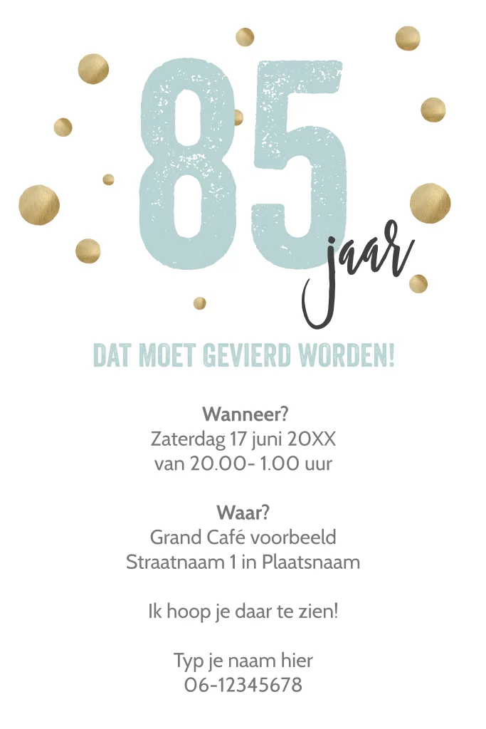 De leukste 85 jaar uitnodigingen maak en bestel je bij Luckz.