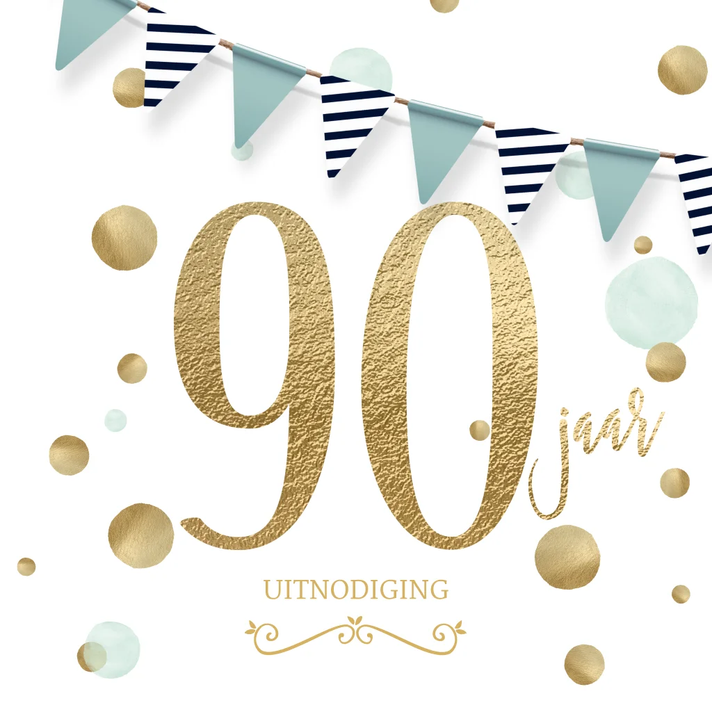 Mooie uitnodiging verjaardag 90 jaar leeftijd en vlaggetjes