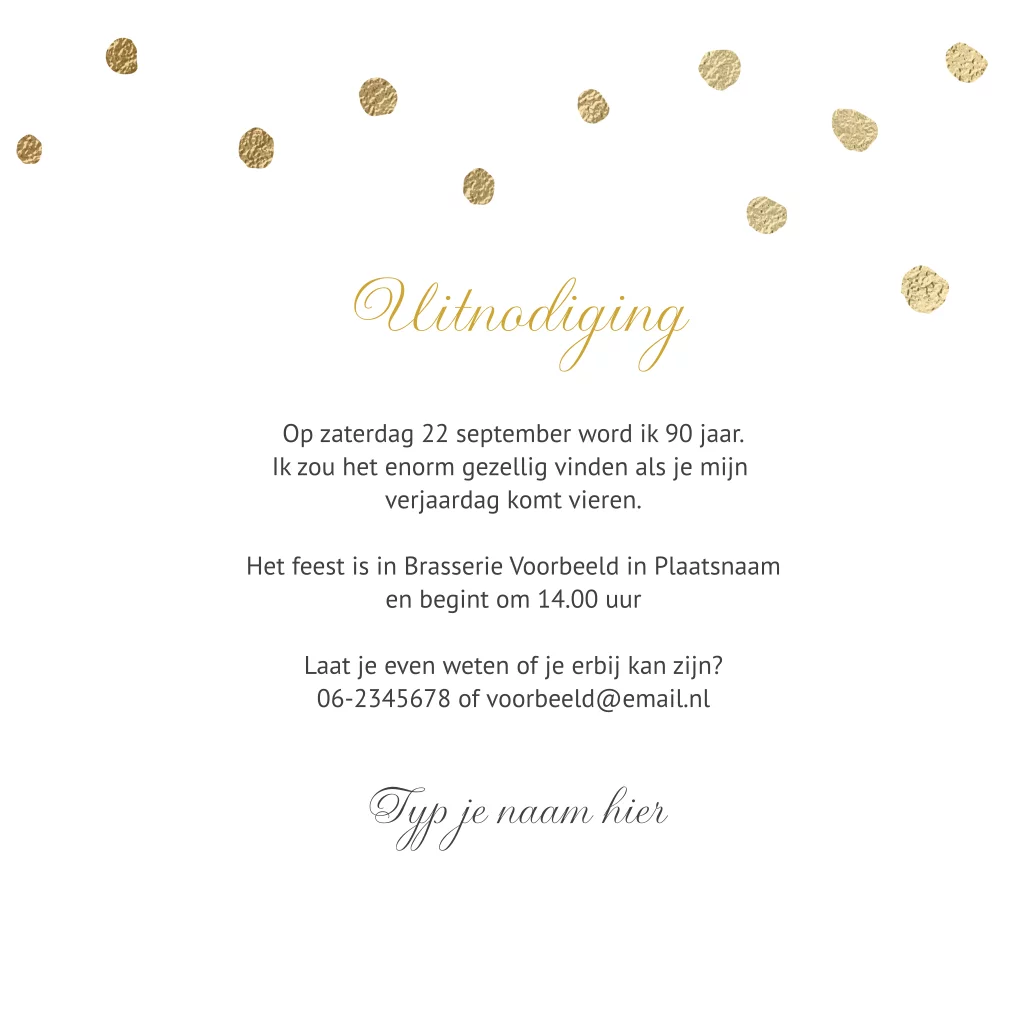 Bewerk deze mooie uitnodigingskaart voor een verjaardagsfeest van 90 jaar bij Luckz.