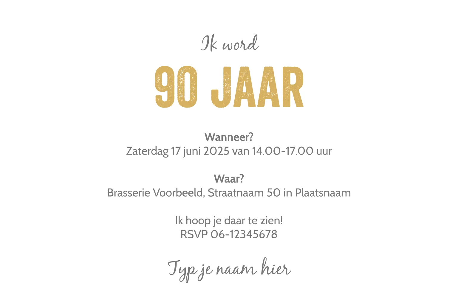 Verjaardag uitnodiging 90 jaar foto's toen nu