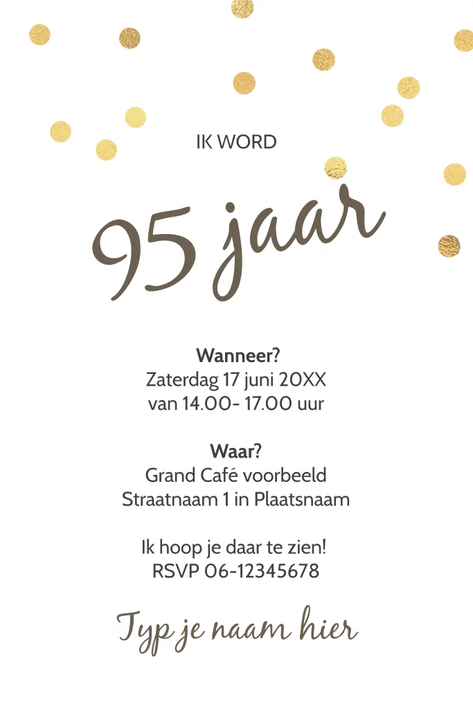 De leukste uitnodigingen voor 95 jaar zelf maken bij Luckz.