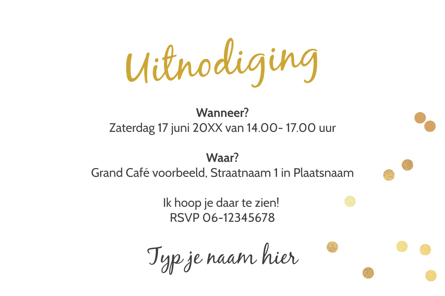 Pas de foto aan op de rechter kant en schrijf een leuke uitnodigingstekst aan de binnenkant.