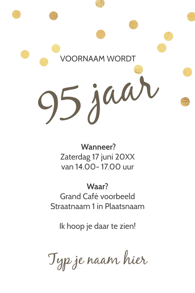 Maak en bestel de mooiste verjaardag uitnodigingen voor 95 jaar bij Luckz.