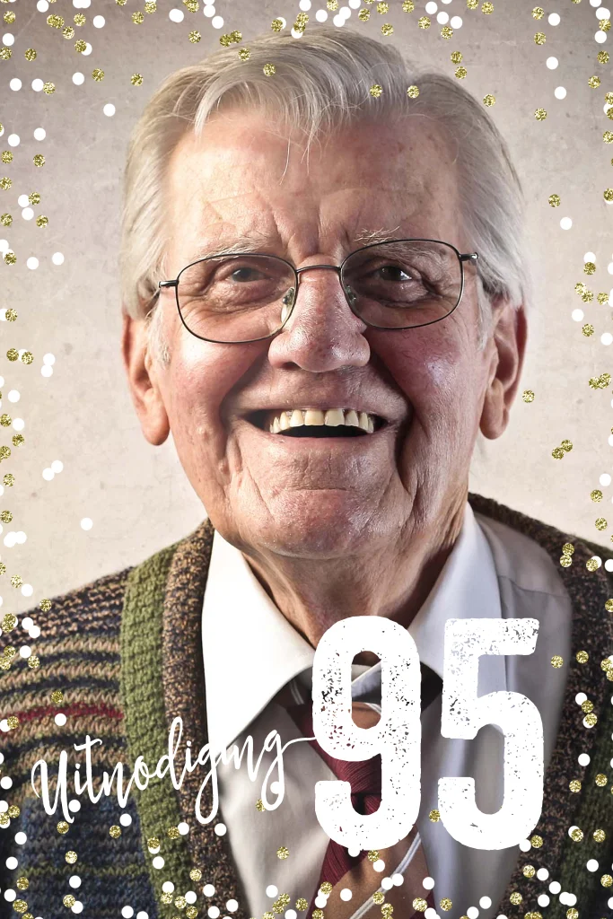 Pas zelf de kleuren, teksten, foto en eventueel de leeftijden aan. Ontwerp zelf een originele uitnodiging voor de verjaardag van een man of een vrouw van 95 jaar bij Luckz.