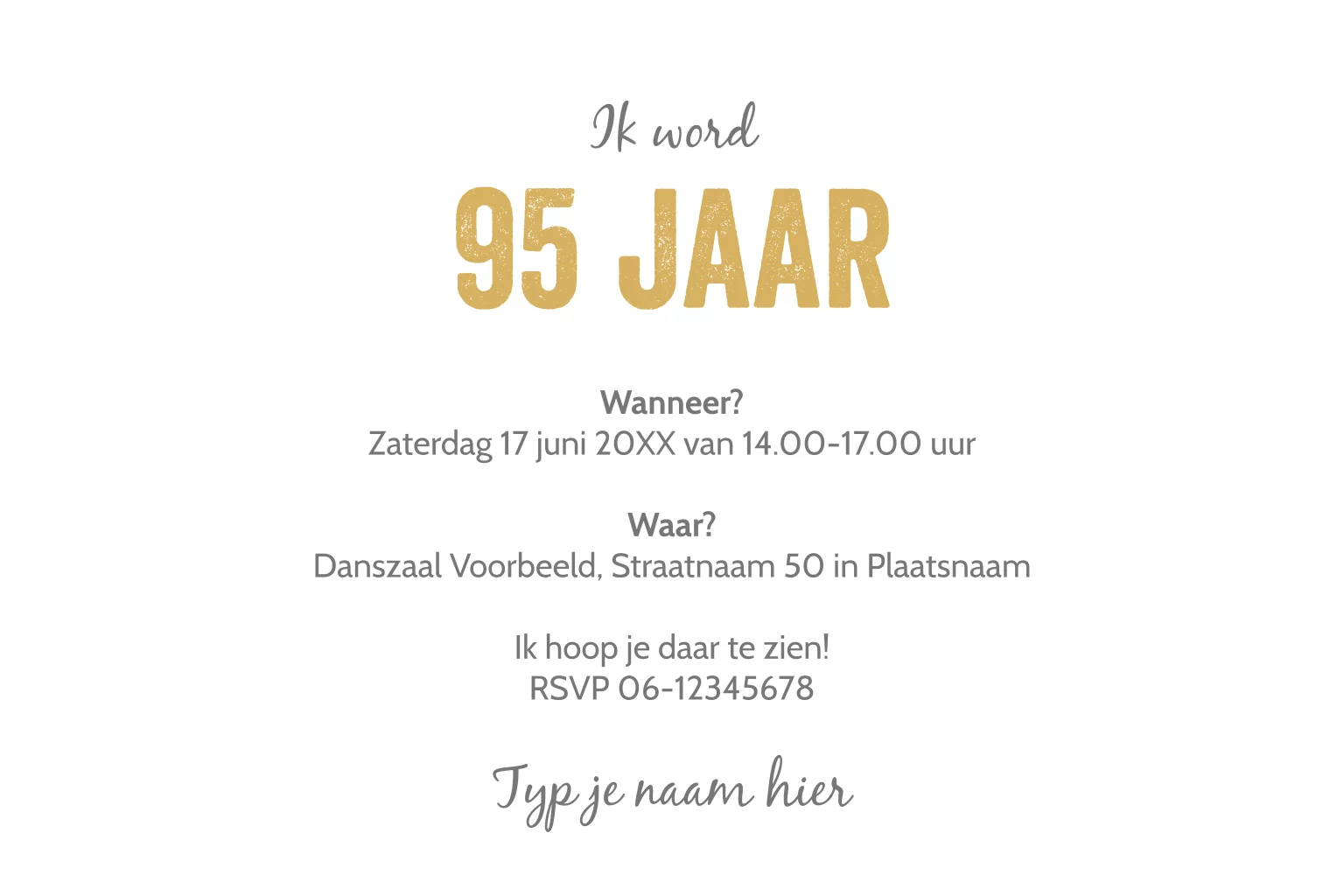 Ander jaartal? Hulp nodig met de uitnodiging? Neem gerust contact met ons op.