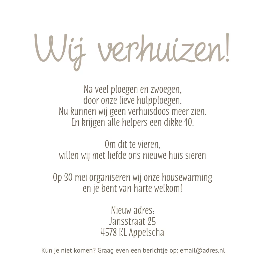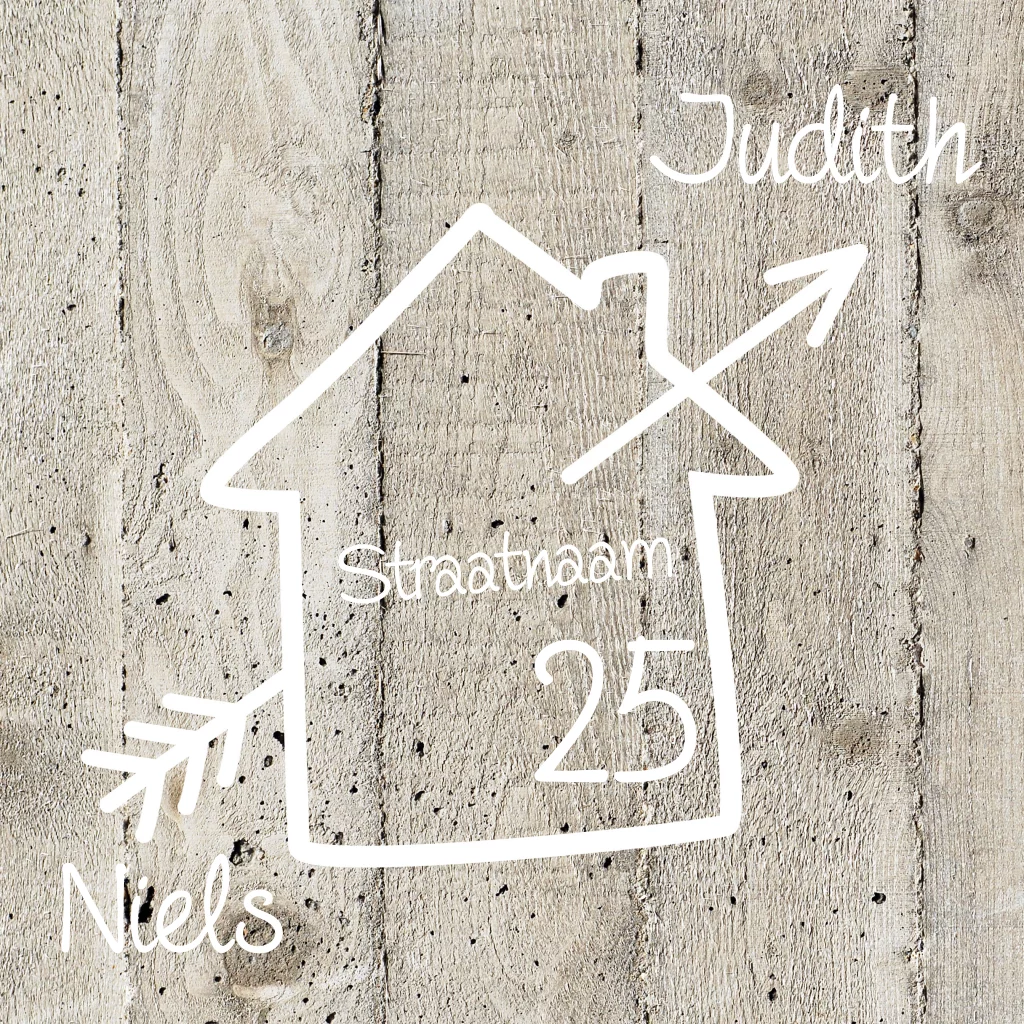 Een hippe verhuiskaart met een hout look achtergrond en illustratie van een huis.Ontwerp zelf deze verhuiskaart en pas kleuren en teksten aan naar wens!