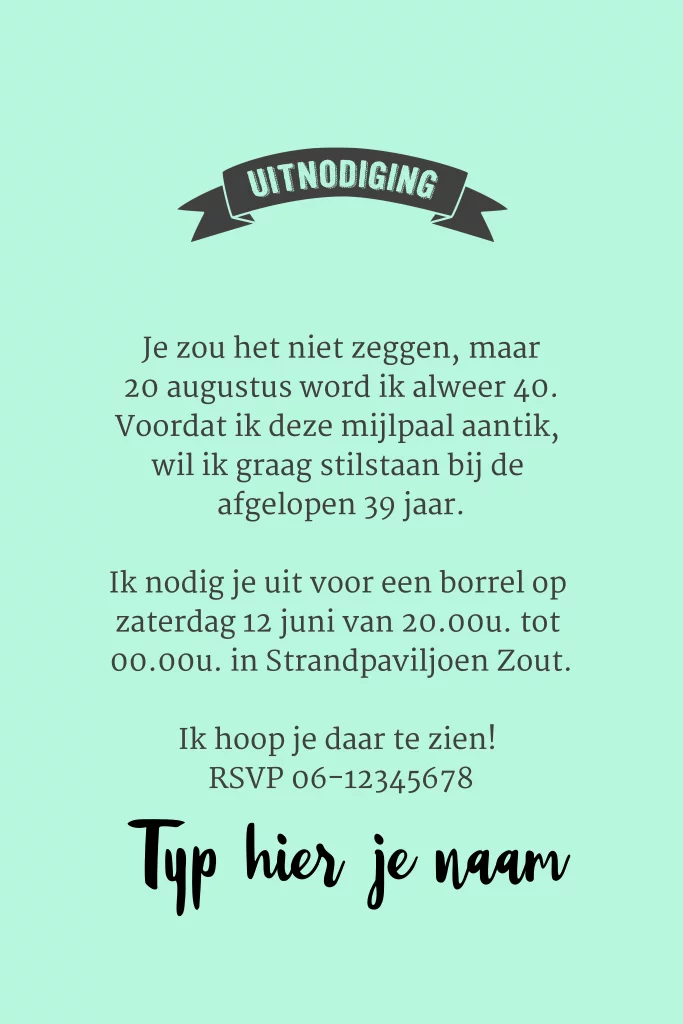 Dol op het strand en bijna jarig? Of ga je een ander strandfeest organiseren? Nodig iedereen uit voor een trendy feest op het strand met deze hippe Beach Party uitnodiging. Alle teksten kun je eenvoudig personaliseren.