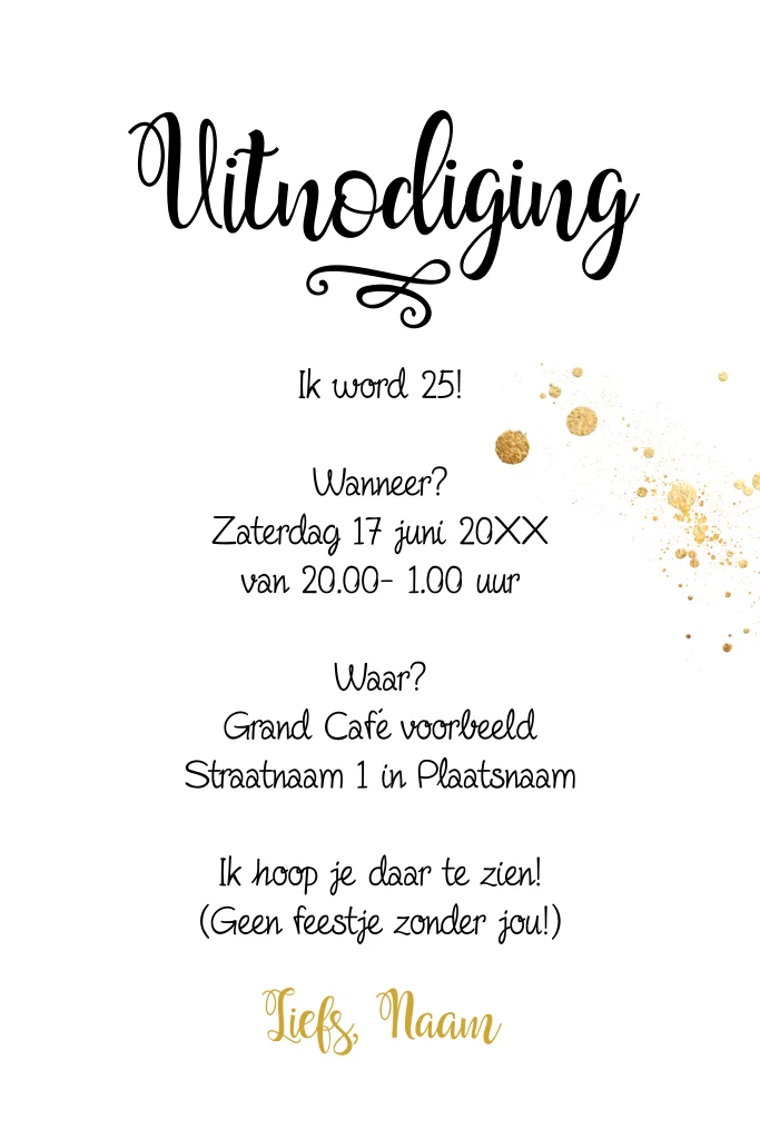 Grappige uitnodigingskaart voor je verjaardag met leuke typografische teksten. Nodig op een ludieke manier al je vrienden uit voor een leuk feestje.