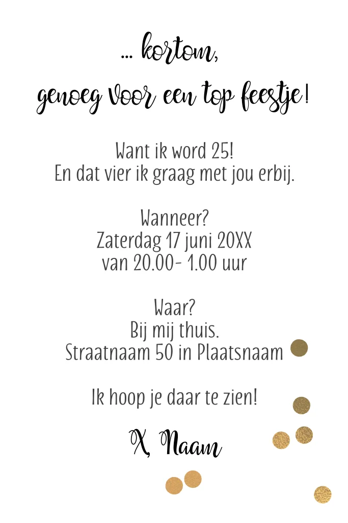 Alles op deze feestelijke uitnodiging kun je zelf personaliseren. Met je eigen uitnodigings woorden, teksten, foto's en andere leuke illustraties.