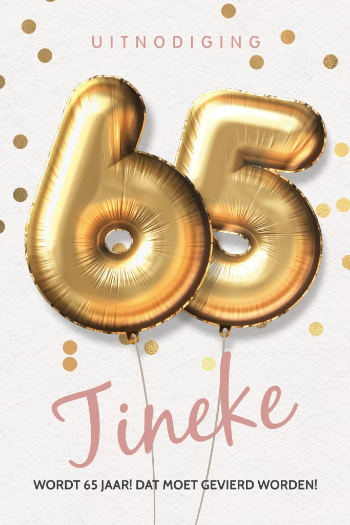 Mooie uitnodiging 65 jaar gouden ballonnen