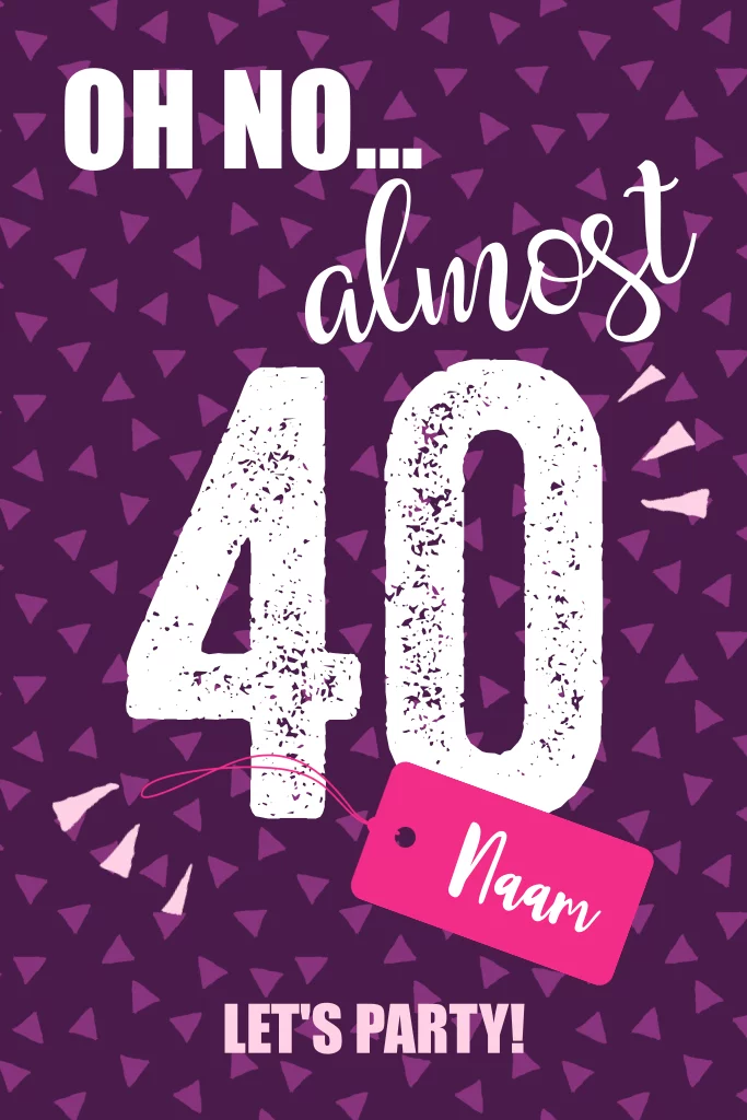 Wil jij een verjaardagsfeest geven waar iedereen nog lang over zal napraten? Maak dan deze grappige uitnodiging "OH NO... Almost 40!". Deze kaart is perfect voor de feestbeesten onder ons die binnenkort hun 40ste verjaardag vieren. Natuurlijk kun je alles op de uitnodiging eenvoudig personaliseren zoals de leeftijd, kleuren en de teksten.