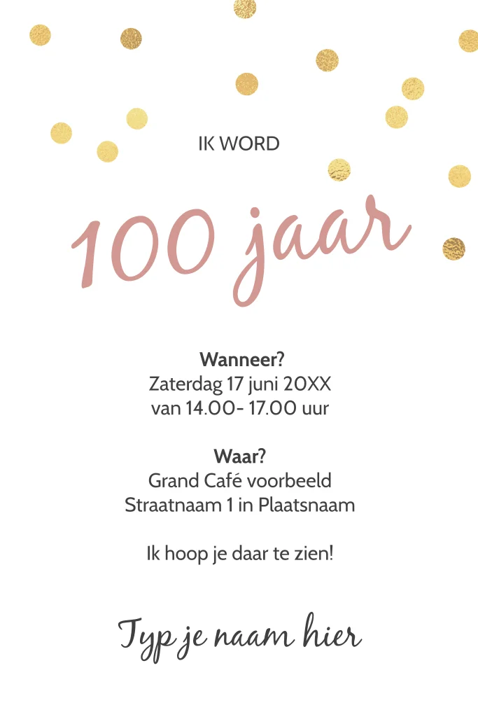 Maak en bestel de leukste verjaardag uitnodigingen voor 100 jaar bij Luckz.