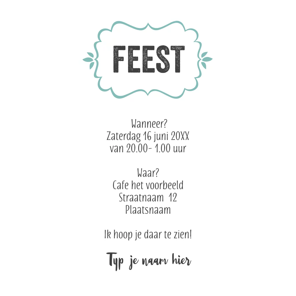Hippe uitnodiging voor een verjaardagsfeest met schoolbord achtergrond en wit met mint kleurige typografische teksten. Alle kleur en tekst is aan te passen. Ontwerp jouw eigen uitnodiging voor een top feest!