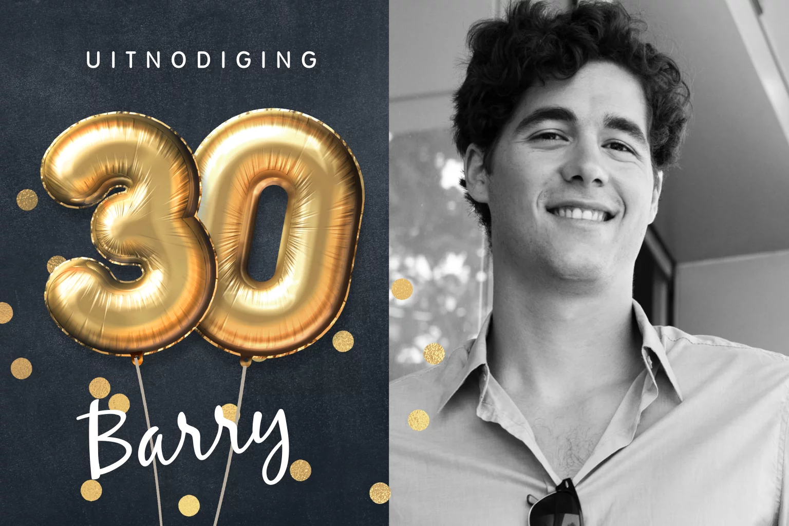 Deze uitnodiging voor een verjaardag is voor een man of vrouw, pas zelf de foto en teksten aan.