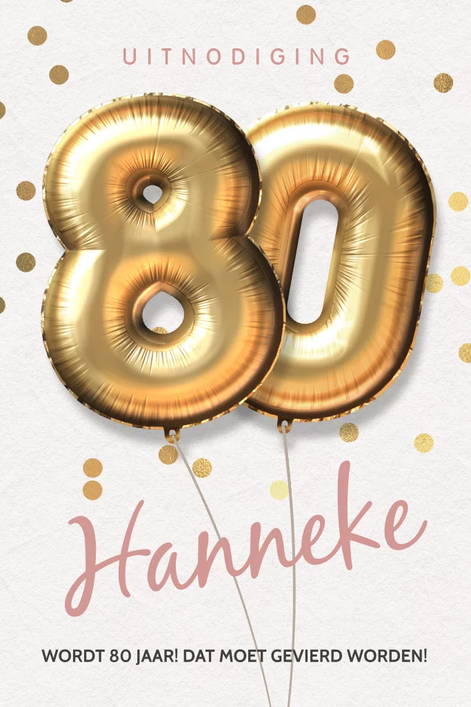 Uitnodiging verjaardag 80 jaar met grote gouden balonnen