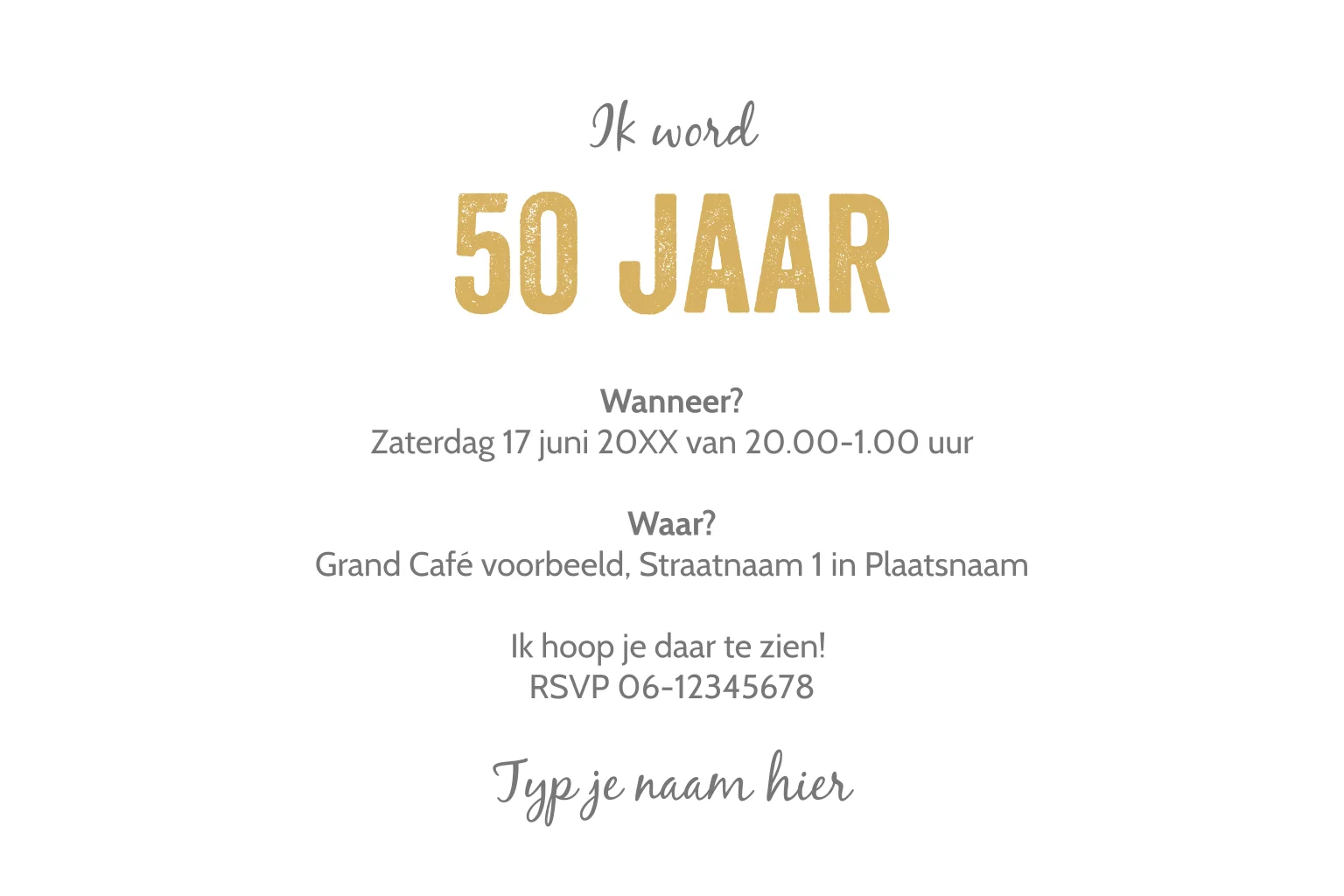 Leuke verjaardag uitnodiging met aanpasbare leeftijd en je eigen foto's van vroeger en van nu op de voorkant. Het is heel leuk en origineel om deze uitnodiging zelf te personaliseren.