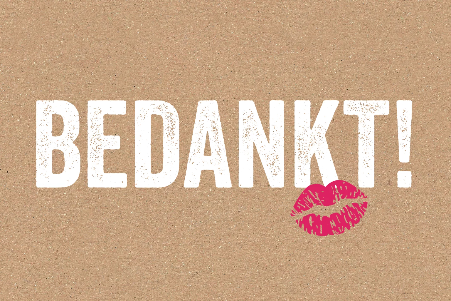 Een hippe bedankkaart voor elke gelegenheid met een kus op de voorkant en vele kusjes in de binnenkant. Alles kun je zelf aanpassen. Schrijf een leuke bedanktekst op de voorkant en een persoonlijk bericht in de binnenkant. De leukste wenskaarten maak je zelf bij Luckz.