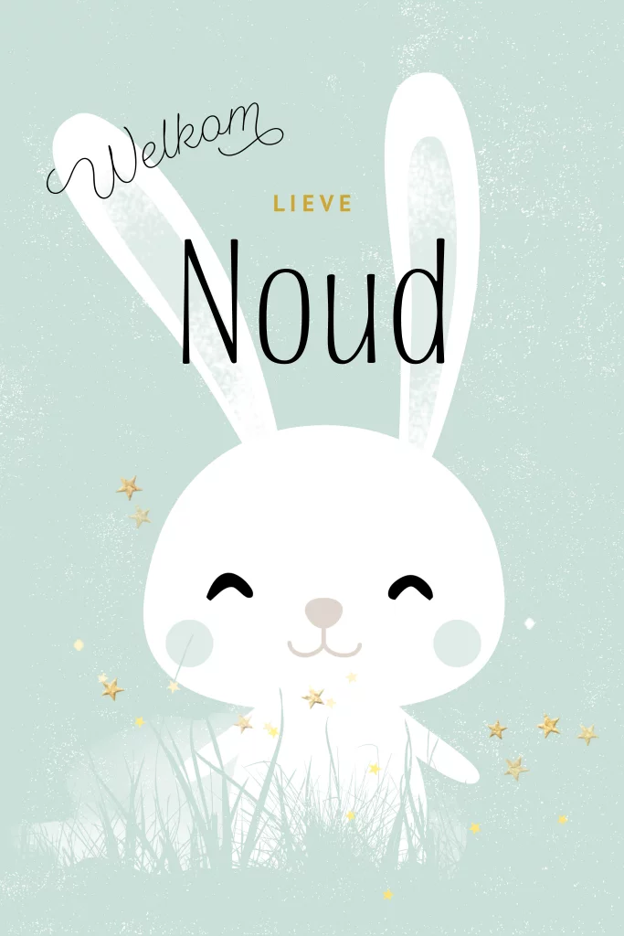 Wat een schattige geboorte felicitatie voor een jongen. Met een lief klein wit konijn in mint groen gras. Maak zelf deze geboorte felicitatie voor een zoon en schrijf je eigen teksten in de binnenkant.