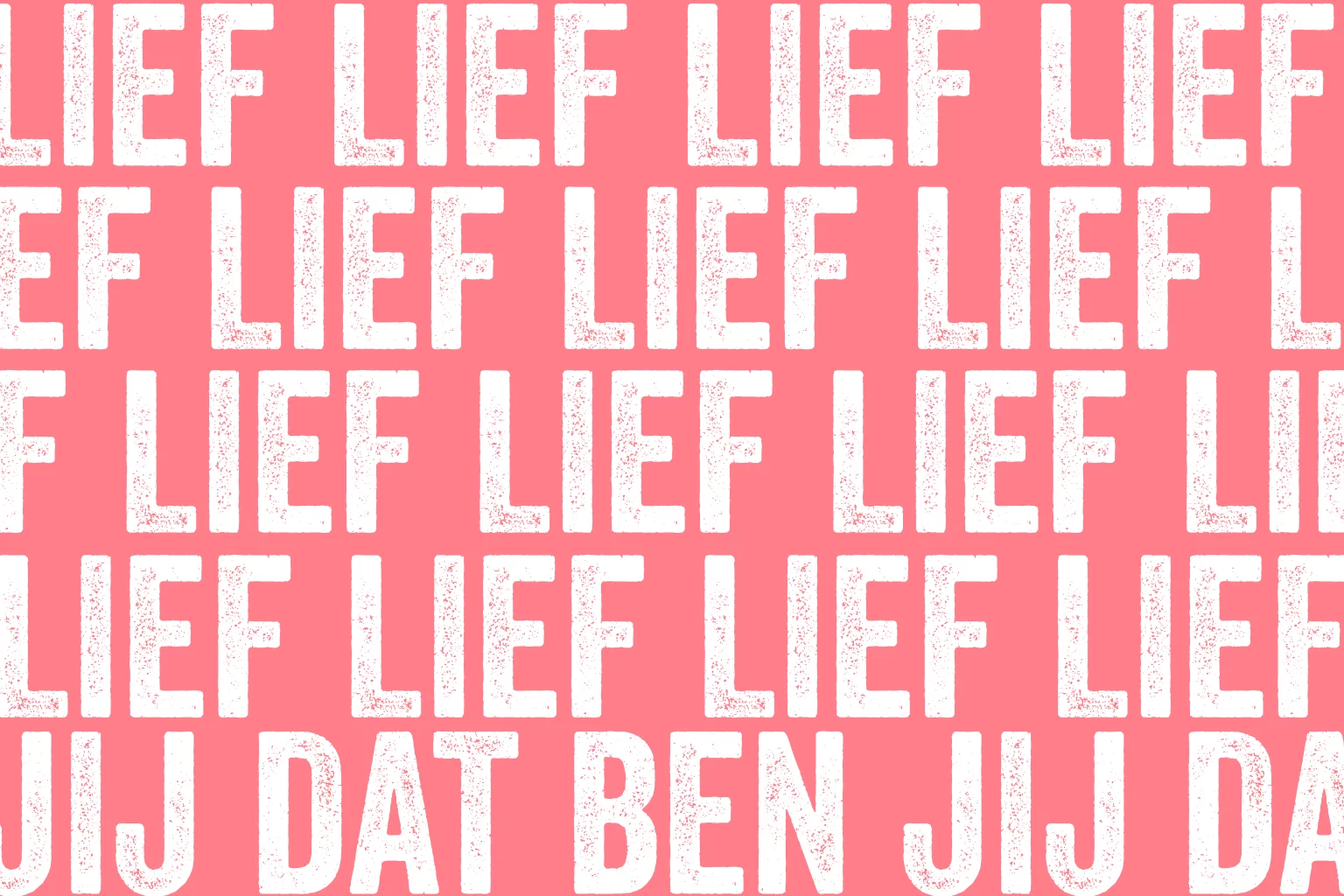 Lief kaartje met grote hippe typografische teksten. Waar het woord lief vaak wordt herhaald en onderin “Dat ben jij”. De teksten en kleuren kun je zelf naar wens aanpassen. Maak en verstuur de liefste kaarten bij Luckz.