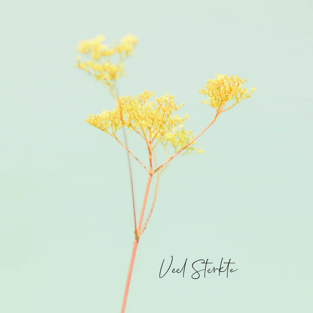 Mooie sterkte kaart met kleine gele bloempjes op een mint groene ondergrond. Schrijf je eigen teksten op de voorkant en binnenkant. Maak je eigen wenskaart voor iedere gelegenheid bij Luckz.