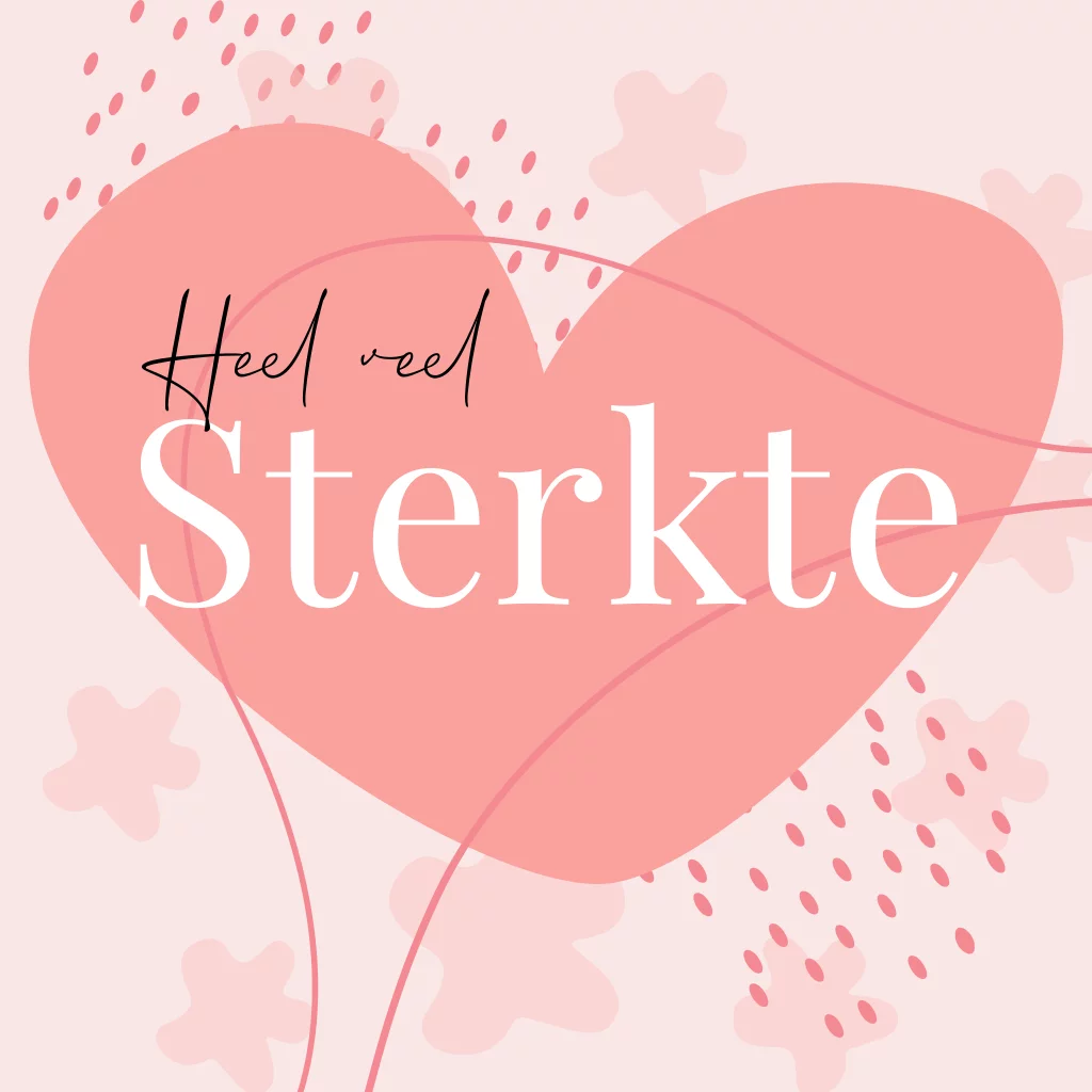 Wens iemand veel sterkte met deze mooie kaart met een groot roze hart, lichte bloemen lijnen en stippen in Boho stijl. Alles op deze sterkte kaart kun je zelf personaliseren.