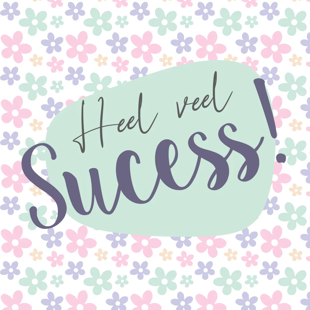 Lieve kaart om iemand heel veel succes te wensen, met vrolijke bloemetjes. Alles op deze succes kaart kun je zelf aanpassen.