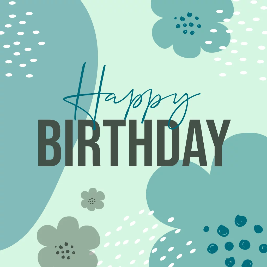 Maak deze hippe verjaardagskaart met botanisch Boho design van grote blauwe bloemen en verf stippen. De Happy Birthday tekst kun je zelf personaliseren.