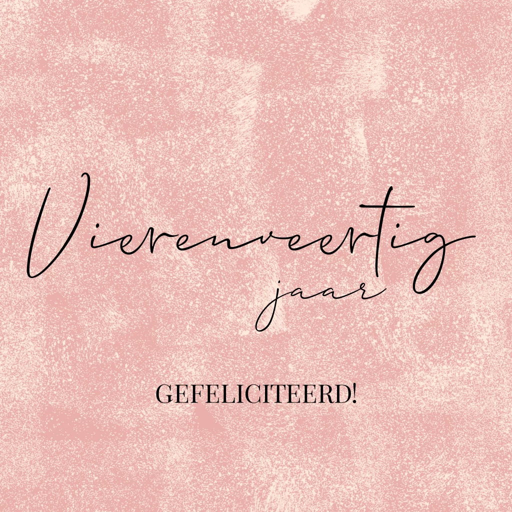 Mooie verjaardagskaart met de leeftijd uitgeschreven en gefeliciteerd op een licht roze ondergrond. Alles op deze stijlvolle verjaardagskaart kun je zelf personaliseren. Wijzig de geschreven leeftijd, voeg versieringen toe, kies mooie kleuren en schrijf een bericht in de binnenkant. Verstuur daarna je kaart direct naar de jarige.