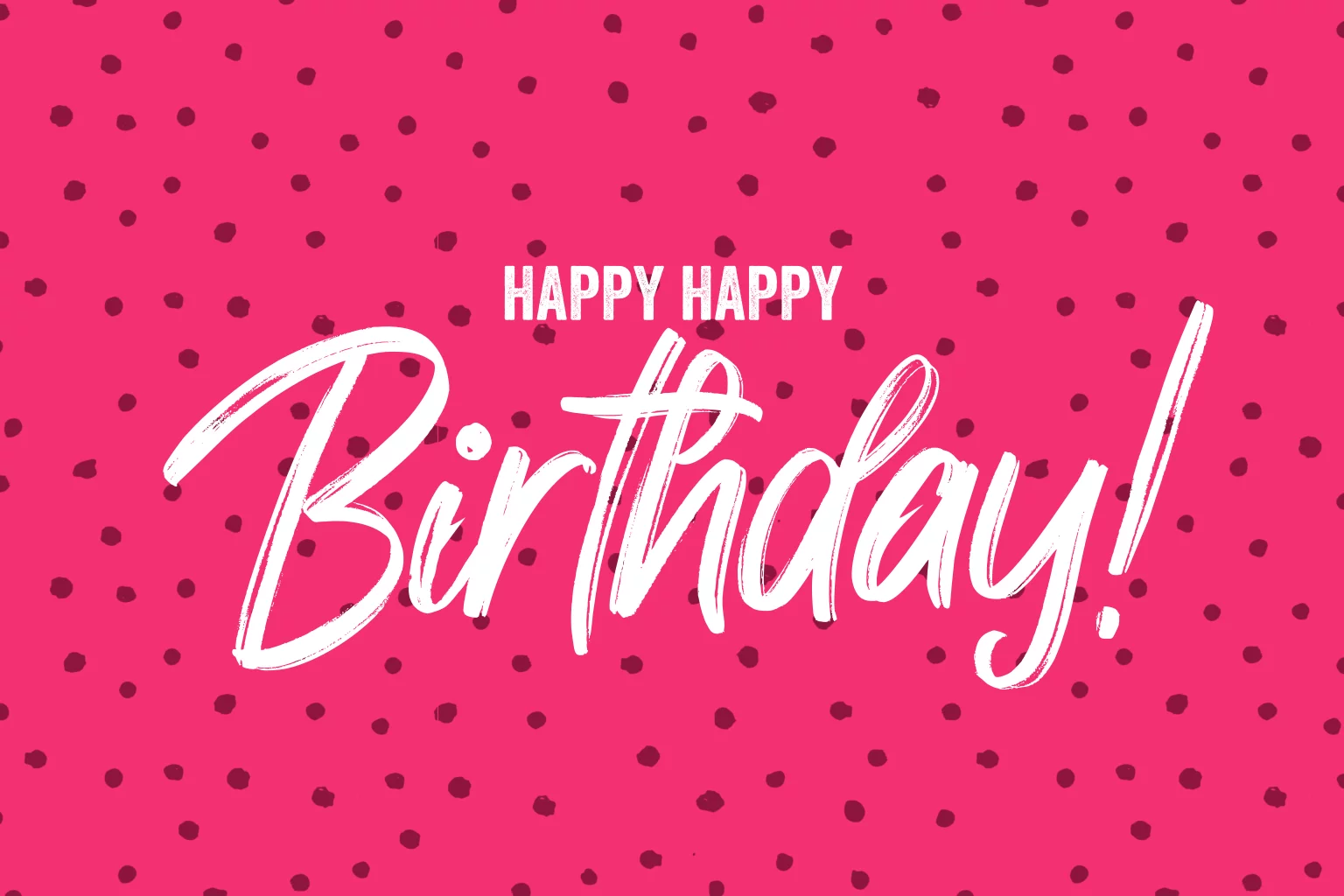 Feestelijke verjaardagskaart die je zelf kan personaliseren. Met vrolijke confetti stippen op een fel roze ondergrond. En de voorbeeld tekst: Happy Happy Birthday!