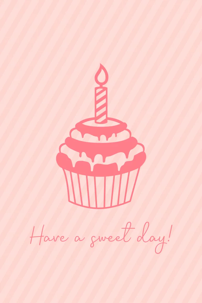 Leuke verjaardagskaart met een illustratie van een cupcake met een kaarsje op een lieve roze streepjes ondergrond. Met de tekst: Have a great day! Alles op deze wenskaart kun je zelf personaliseren, schrijf een leuke tekst, pas de kleuren aan en voeg eventueel een foto toe in de binnenkant.