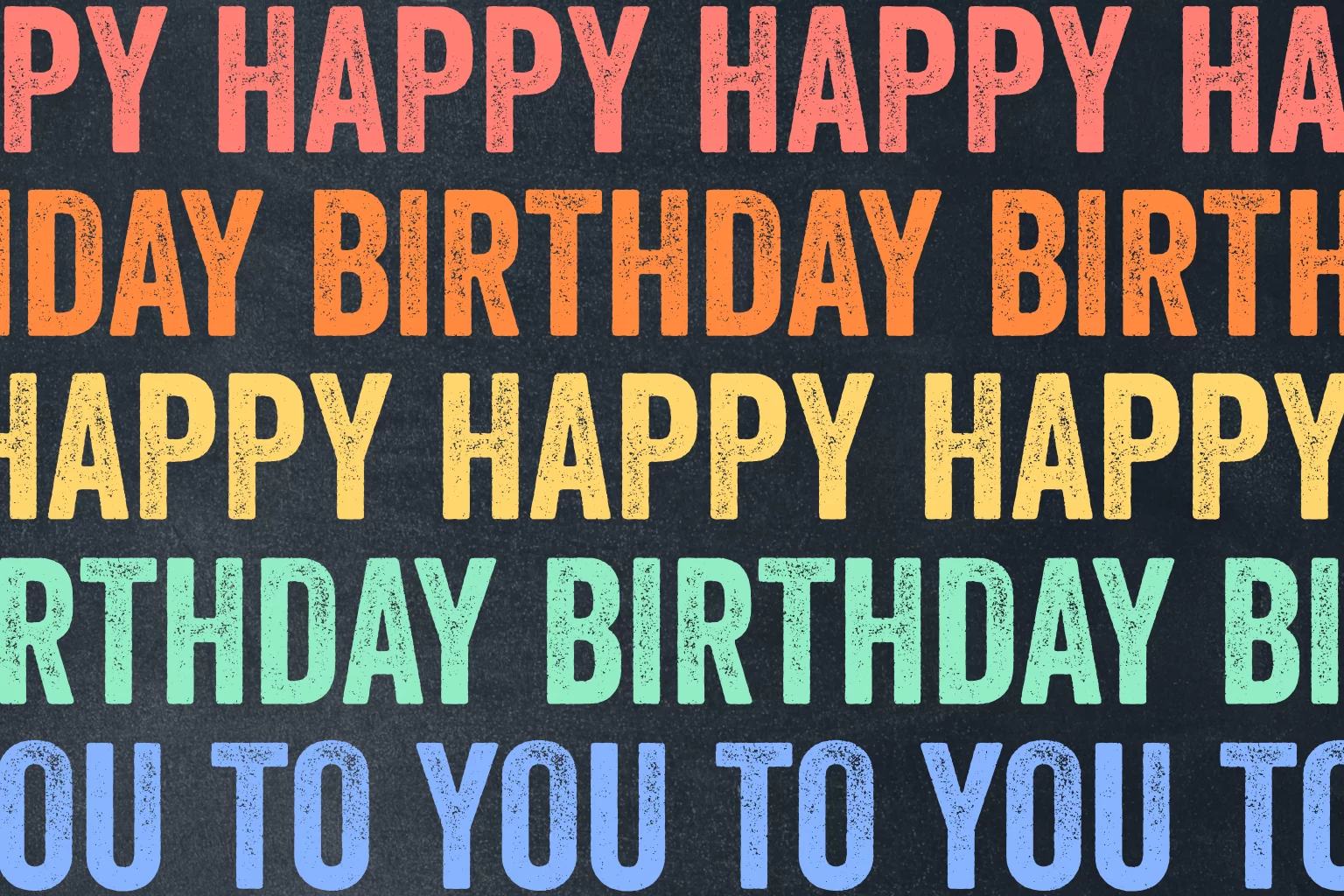 Hippe verjaardagskaart met regenboog typografie van de teksten Happy Happy Birthday to you.