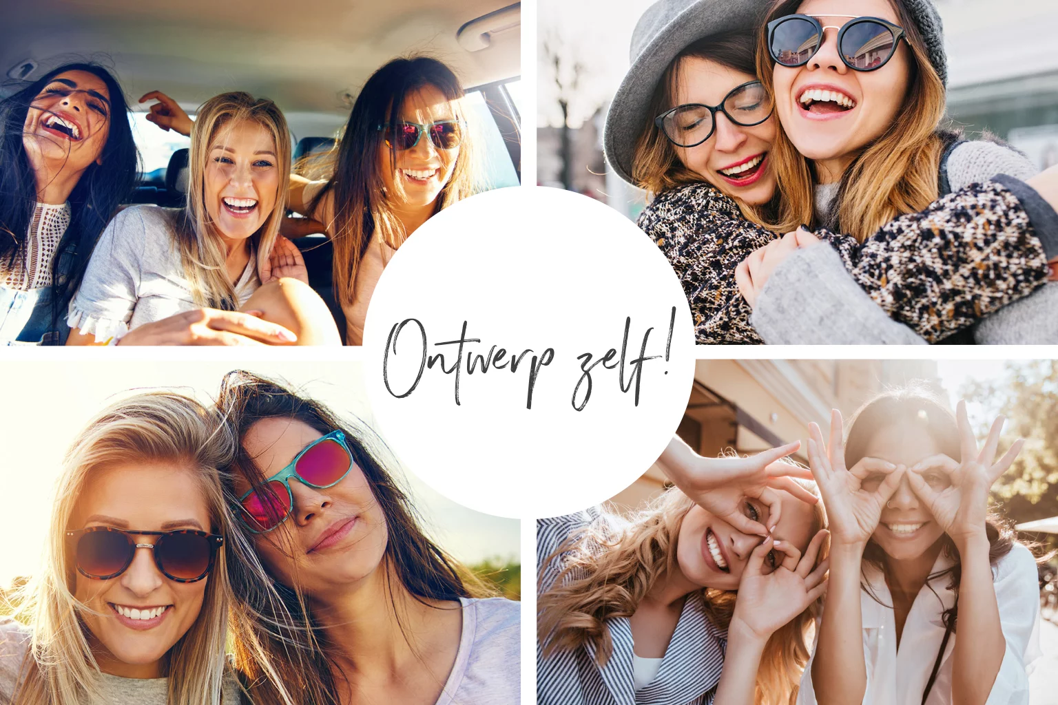 Fotokaart met 4 eigen fotos en cirkel